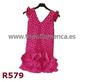 Precioso traje de flamenca de niña fucsia con lunares rosa tipo Marisol, con tela de strech; muy barato, excelente relación calidad-precio.