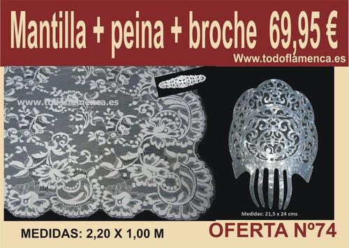 Esta magnífica oferta de mantilla española, peineta de plástico color nácar y broche está compuesta: