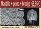 - Tradicional mantilla española (ref.444M) de encaje marfil (blanco roto) con blondas, que usan las mujeres para cubrirse la cabeza y que a veces cae sobre los hombros y la espalda; las mantillas suelen ser ponerse en festividades, especialmente en Semana Santa, para ir a los toros o como complemento de algunos trajes populares o de fiesta.