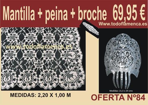 Esta magnífica oferta de mantilla española, peineta de plástico color nácar y broche está compuesta: