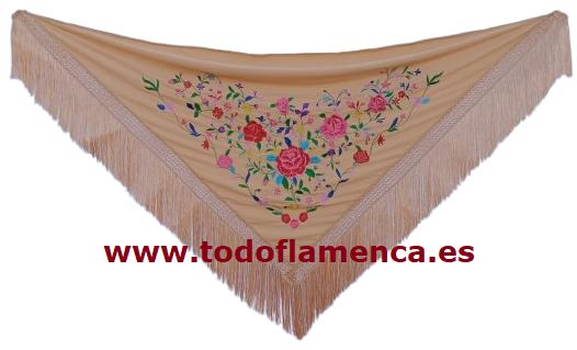 Precioso mantón de flamenca bordado para mujer con flores y flecos . Mantón ideal para tu traje de flamenca, para tu traje de baile flamenco, de sevillana, de gitana, de faralae, para romerías, verbenas populares o para disfrazarte de flamenca.