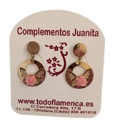 Pendiente dorado con flor de resina ideal para flamenca y fiestas.