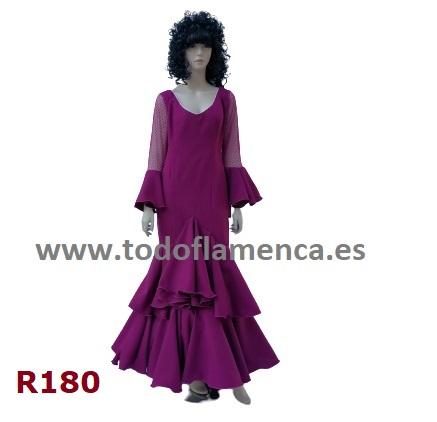 Oferta traje de flamenca bugambilia, con manga al codo con un volante, Nueva Colección, muy económico, con una excelente calidad-precio. Tela de strech, muy ligera. Traje de flamenca barato.