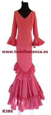 Oferta traje de flamenca coral, con manga al codo con un volante, Nueva Colección, muy económico, con una excelente calidad-precio. Tela de strech, muy ligera. Traje de flamenca barato.