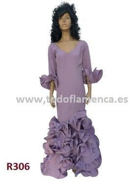 Oferta traje de flamenca malva, con manga al codo con doble volante, Nueva Colección, muy económico, con una excelente calidad-precio. Tela de strech, muy ligera. Traje de flamenca barato.