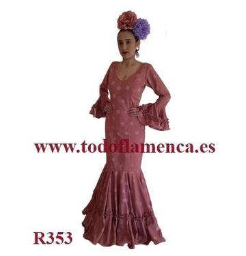 Oferta traje de flamenca rosa maquillaje con lunar en un tono menos, con un volante en la manga, Nueva Colección, muy económico, con una excelente calidad-precio. Tela de satén, muy ligera. Traje de flamenca barato.