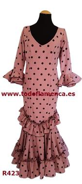 Oferta traje de flamenca maquillaje con lunares negros, con manga al codo con un volante, Nueva Colección, muy económico, con una excelente calidad-precio. Tela de strech, muy ligera. Traje de flamenca barato.