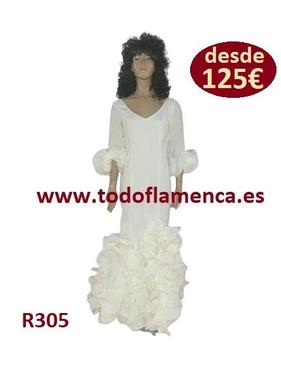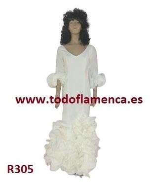 Oferta traje de flamenca marfil, con manga al codo con un volante, Nueva Colección, muy económico, con una excelente calidad-precio. Tela de strech, muy ligera. Traje de flamenca barato.