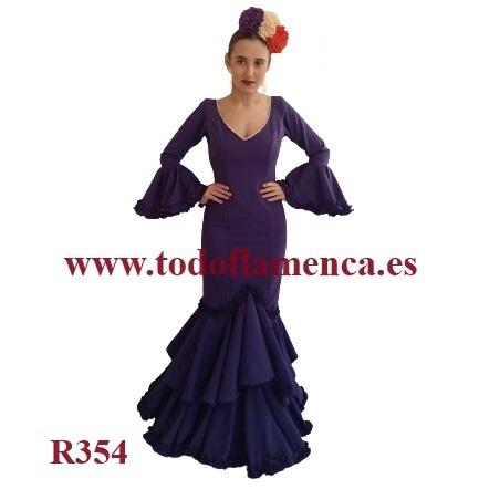 Oferta traje de flamenca morado, con un volante en la manga, Nueva Colección, muy económico, con una excelente calidad-precio. Tela de strech, muy ligera. Traje de flamenca barato.