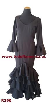 Oferta traje de flamenca negro, con manga al codo con un volante, Nueva Colección, muy económico, con una excelente calidad-precio. Tela de strech, muy ligera. Traje de flamenca barato.