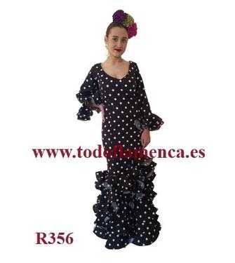 Oferta traje de flamenca negro con lunares blancos, con un volante en la manga, Nueva Colección, muy económico, con una excelente calidad-precio. Tela de strech, muy ligera. Traje de flamenca barato.
