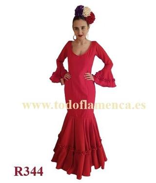 Oferta traje de flamenca rojo, con un volante en la manga, Nueva Colección, muy económico, con una excelente calidad-precio. Tela de strech, muy ligera. Traje de flamenca barato.