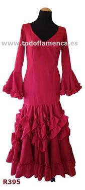 Oferta traje de flamenca rojo, con manga al codo con un volante, Nueva Colección, muy económico, con una excelente calidad-precio. Tela de strech, muy ligera. Traje de flamenca barato.
