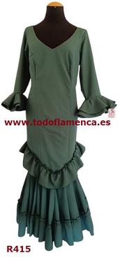 Oferta traje de flamenca verde botella, con manga al codo con un volante, Nueva Colección, muy económico, con una excelente calidad-precio. Tela de strech, muy ligera. Traje de flamenca barato.