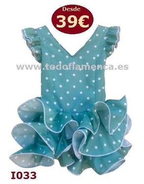 Precioso traje de flamenca de niña verdeagua con lunar blanco, tipo Marisol, muy barato, excelente relación calidad-precio.